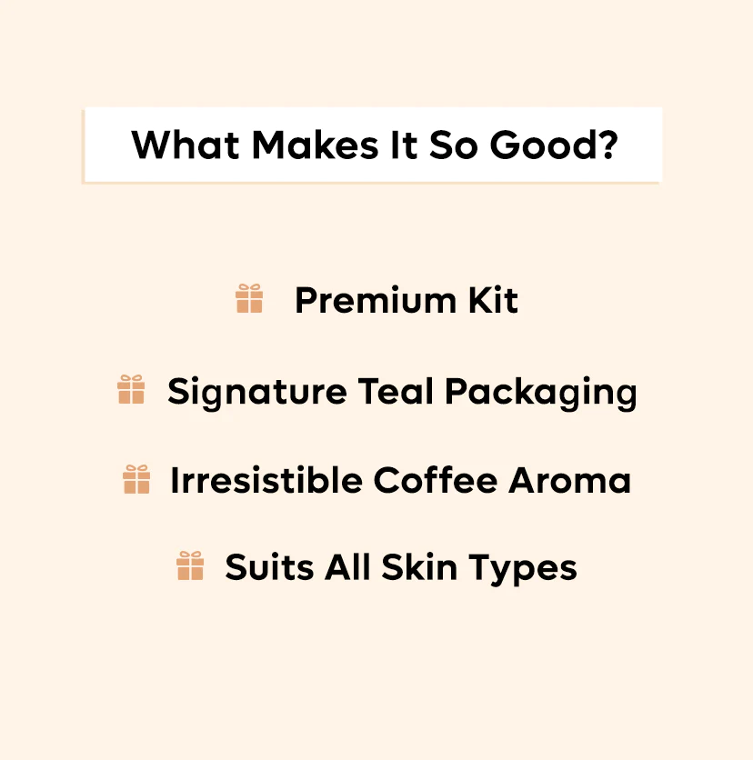 Coffee’s for every mood and so is this gift kit. Uplift their mood and skin with this 4-step rejuvenating regime! The Coffee Mood – Gift Kit is specially curated to make your loved one’s day extra special. Birthday, anniversary, Rakhi gift or just because, no matter what the occasion, your search for the perfect surprise gift ends with this mCaffeine kit!