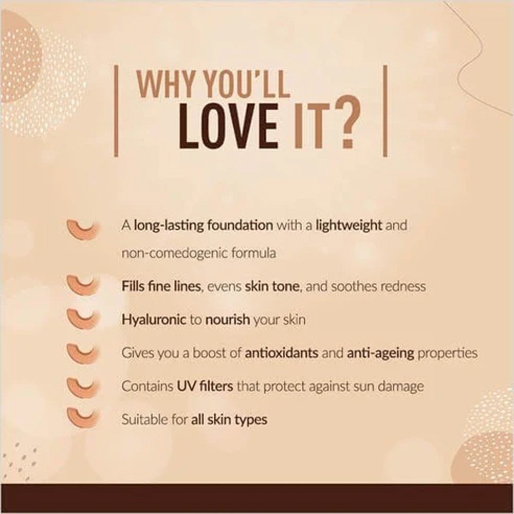Colorbar Timeless Filling And Lifting Foundations has a lightweight formula enriched with Hyaluronic acid which hydrates your skin and blurs fine lines, while giving you a boost of antioxidants to fight against the visible signs of ageing. Its non-comedogenic formula contains filters that block all the sun damage and its superior adhesion power ensures long-lasting application.